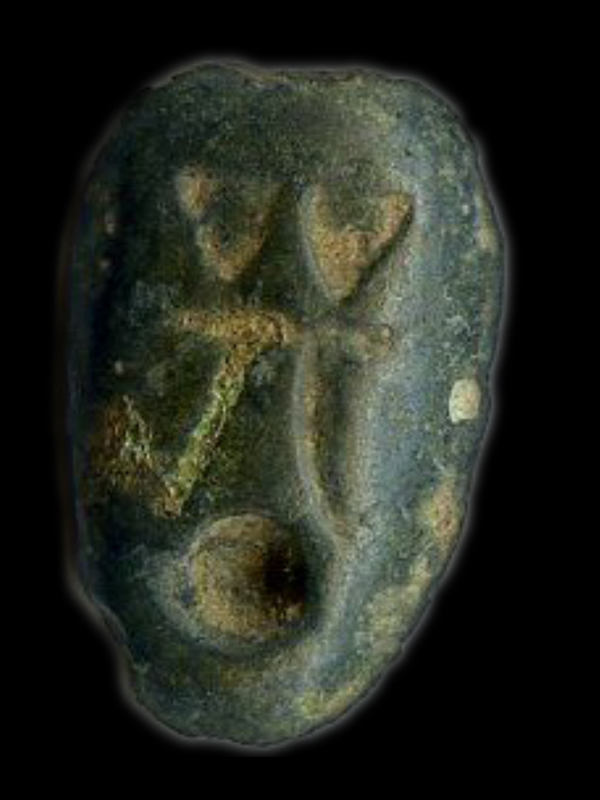【铜仿贝】仿货贝之形,早期者与天然贝形制相近,春秋以后,南方楚国地区又铸造出有文字的【铜仿贝】,是为有文铜贝,它的外形有的像蚂蚁爬鼻有的像鬼脸的样子,所以俗称【蚁鼻钱】或【鬼脸钱】,其正面有阴文,多达10余种,常见【贝】字;少数为【君】、【圻】等字,意义不明。但形制却比较一致,均为上广下尖的瓜子形,面有文字,背部平整,广泛行用于南方地区。楚国疆土开始时并不算大,以后疆土逐渐扩大,蚁鼻钱和鬼脸钱的流通范围也随之扩大,逐渐在长江中下游一带形成了独立的货币体系。湖北、湖南、江苏、豫西、鲁南出土最多。