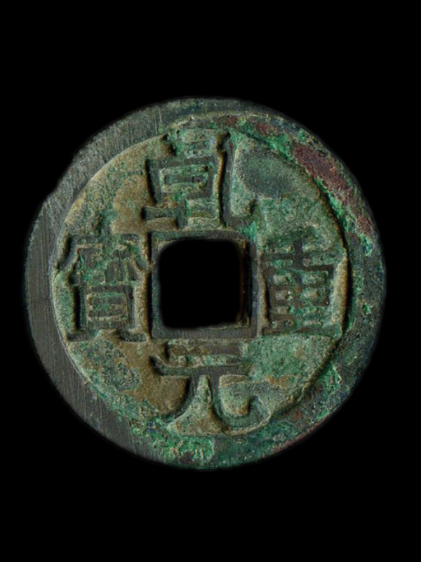 唐肃宗乾元元年七月,御史中丞奏请铸行【乾元重宝】,以乾元重宝一枚当开元通宝十枚。乾元重宝为圆形,内有方孔,铸有凸文【乾元重宝】四字,径27毫米,重5.97克,钱文隶书,顺读,书法精妙,有光背及背下俯月、朱雀、穿上或穿下祥云或星文的。初铸轮廓深峻,后期较为轻小。在货币不断减值的情况下,物价却不断抬高。到肃宗死后代宗继位时,便下令停铸大钱,独行开元通宝小钱。