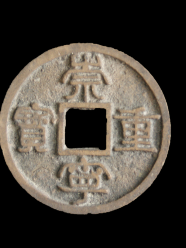 崇宁重宝系北宋徽宗赵佶崇宁年间铸(公元1102年~1106年),是为折十铜、铁钱。崇宁重宝钱文隶书,直读,古朴方正,严谨庄重,法度固定。面背记号多,有花穿、决文、面星、背星月纹等,常能见到。崇宁重宝大小兼有,轻重不一,厚薄不均,可分大、中、小样等数种。崇宁二年(公元1103年),为解困开始铸造崇宁通宝和崇宁重宝折十对钱,崇宁五年(公元1106年)停铸。短短四年,崇宁大钱铸量巨大,造成北宋晚期经济陷于混乱,百姓和商家均不愿接受崇宁大钱,初铸时极为精良,后期出现减重和私铸现象,不久贬为折五、折三钱使用。
