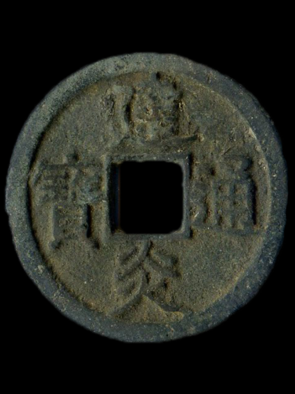 建炎通宝系宋高宗建炎年间(公元1127~1130年)铸,属于建炎钱的一种,南宋第一个年号钱。钱文书体有隶、真(为对品)和瘦金书体,形制较厚重,有铁钱与铜钱并行。建炎通宝有小平、折二、折三等;平钱径2.45厘米,重3.5克。南宋各代各个年号均铸钱,形制、轻重及铜铁并行情况大体与建炎钱相类似。
