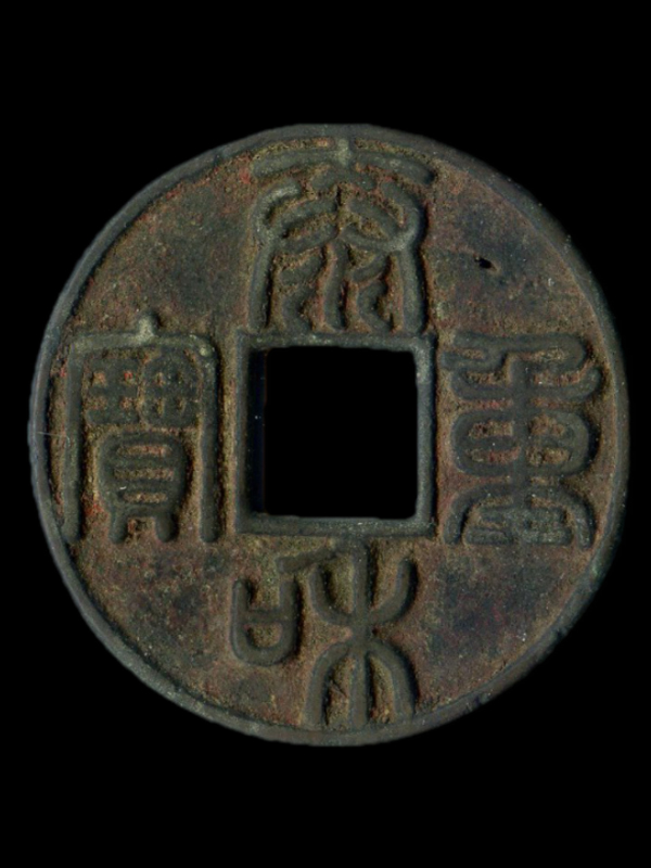 泰和通宝系金章宗泰和四年(公元1204年)铸。钱文【泰和重宝’四字为【玉筋篆】书体,直读,传为金代文学、书法大家党怀英书,字体精纯典雅。泰和重宝铜质优良,体态浑厚,制作精美。该钱币分折三、折十等,折三属试铸,存世绝少,多见于折十钱,有大小样及阔缘窄缘等版式多种,径约45~52毫米,重约20克,光背无文,但有合背钱。篆书泰和重宝传世较丰,然因其属大美泉,仍深得藏钱家之喜爱。