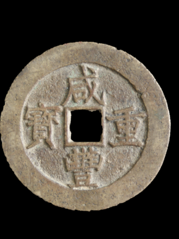 咸丰重宝系清文宗咸丰三年(公元1853年)始铸。钱文楷书蕴含行书神韵,笔法清秀,别具一格,被泉界称为【戴书咸丰】(传为当时书法大家戴熙所书)。咸丰重宝与元宝钱铸于同时,当五十及以下计值称为【咸丰重宝】,高于当五十计值称为【咸丰元宝】,以区别于小平钱【咸丰通宝】。在诸多咸丰大钱之中,应当推举咸丰重宝当十钱币为最。铸期最长、数量最大、版式最多、流通最广,无一不在咸丰大钱中占据首位。所以咸丰重宝当十钱虽然是咸丰大钱中计值较低的品种,但也是自古以来古泉爱好者最关心并致力于收藏和欣赏的计值钱币。