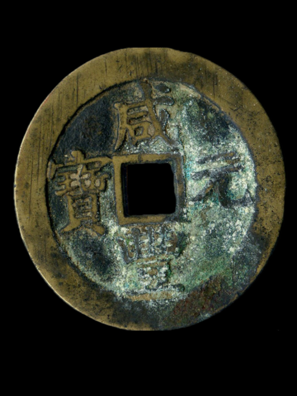 咸丰元宝系清文宗咸丰年间(公元1853~1854年)铸,咸丰元宝与重宝铸于同期,采用了铜铁并铸的形式,数量庞杂,良莠不齐,但也有精工之作。咸丰重宝与元宝钱铸于同时,当五十及以下计值称为【咸丰重宝】,高于当五十计值称为【咸丰元宝】,以区别于小平钱【咸丰通宝】。咸丰朝宝泉局所铸钱咸丰元宝有【当百】、【当二百】、【当三百】、【当五百】、【当千】等五种面值。