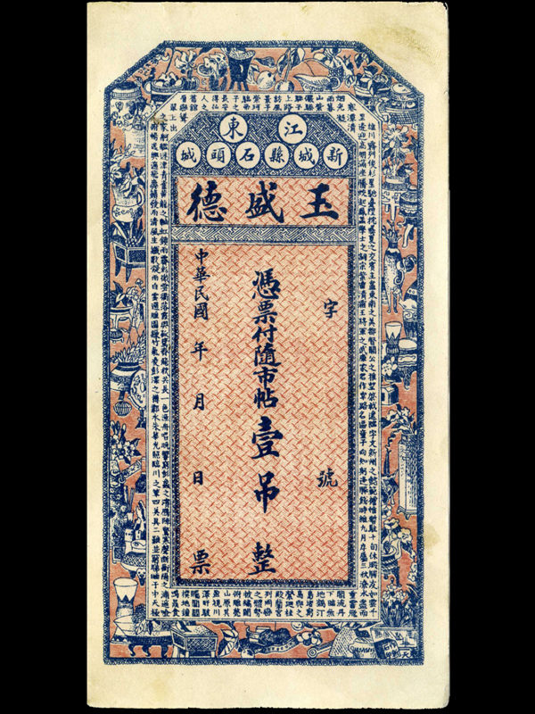 名称:票帖“玉盛德” 面额:一吊 签发时间:未填写