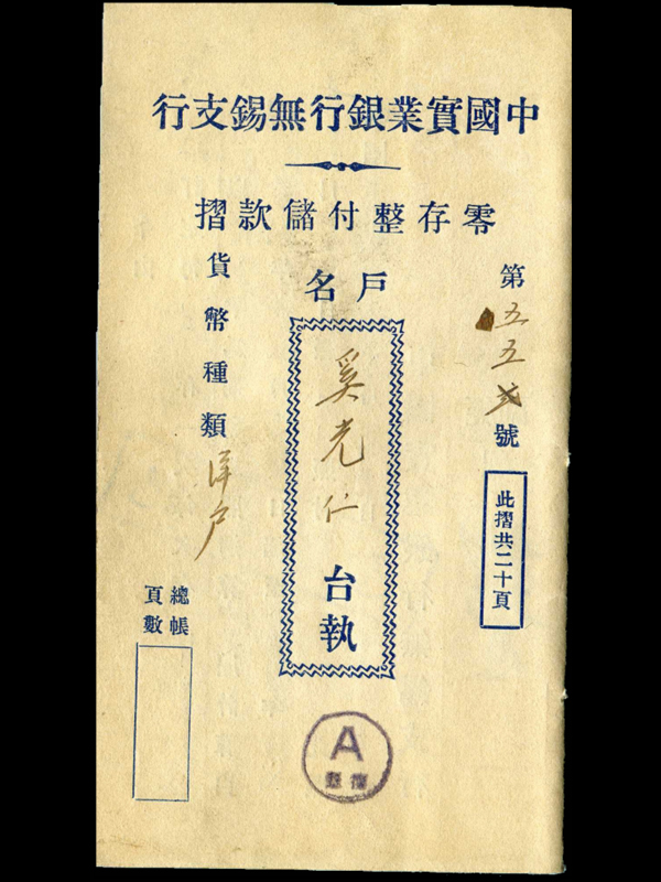 名称:零存整付储款折 发行机构:中国实业银行无锡支行 中国实业银行成立于1919年6月,由北洋政府财政部筹办,总行设于天津。