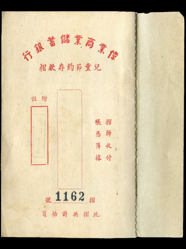 名称:儿童节约存款折 发行机构:伟业商业储蓄银行