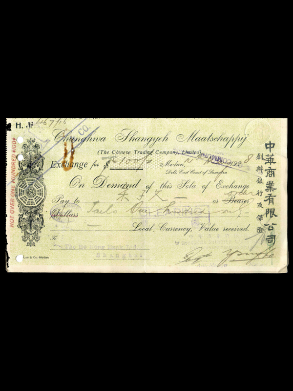 名称:中华商业有限公司支票 面额:100元 签发时间:1928年