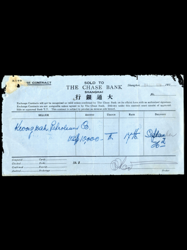 名称:大通银行支票 签发机构:大通银行上海分行 签发时间:1938年9月 面额:10000美元 大通银行创立于1877年,20世纪二十年代透过旗下的证券公司,收购了几家规模较小的银行,其最著名的收购是于1930于年代收购了大股东小约翰.洛克斐勒的纽约公平信托公司,使之成为美国乃至世界的大型银行。1955年,大通银行与曼哈顿银行合并为大通曼哈顿银行,2000年后改名为美国大通银行。