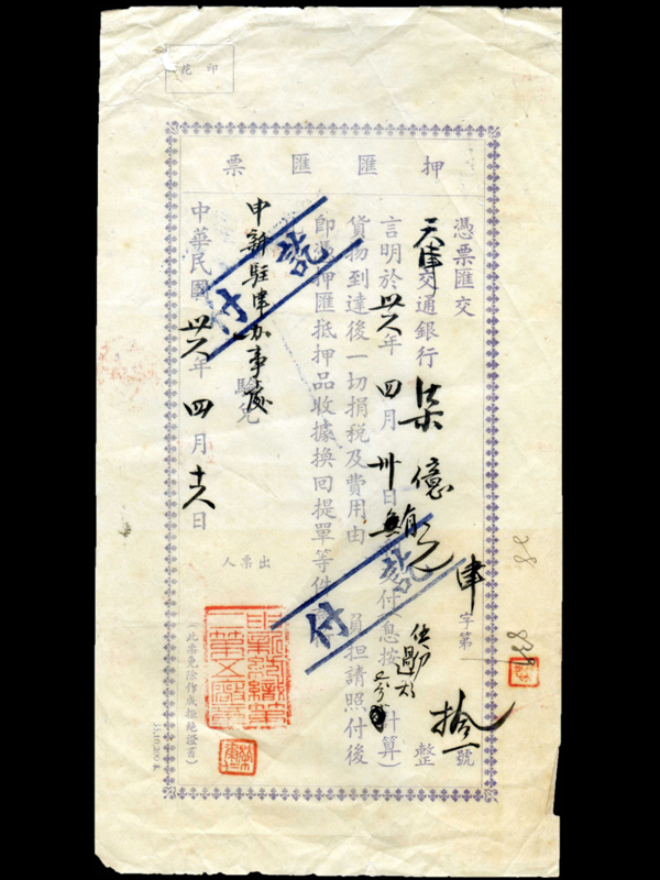 名称:押汇汇票 金额:7亿元 签发时间:1947年4月16日