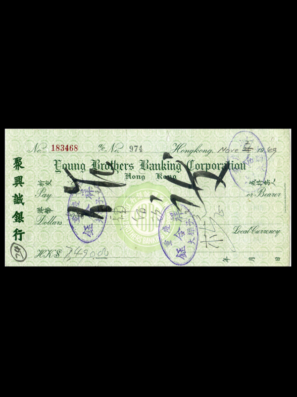 名称:聚兴诚银行支票 发行机构:聚兴诚银行 面额:7490元港币 聚兴诚银行是一家历史甚久的川帮银行,成立于民国4年(1915年)3月,总行在重庆。曾为重庆最大的私营商业银行,也是川帮较大的商业银唯一无军政背景的民族资本银行。解放后,聚兴诚银行于1951年11月1日参加公私合营,从而结束了这家长达34年之久的杨氏家族银行。