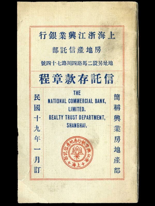 民国19年上海浙江兴业银行房地产信托存款章程