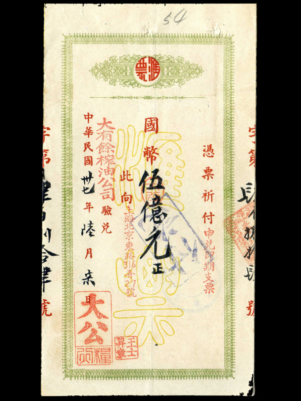 名称:汇票 金额:5亿元 签发时间:1948年6月7日