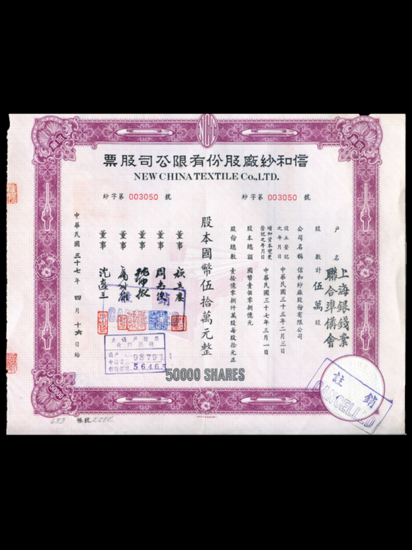 民国37年信和纱厂股份有限公司股票(5万股)