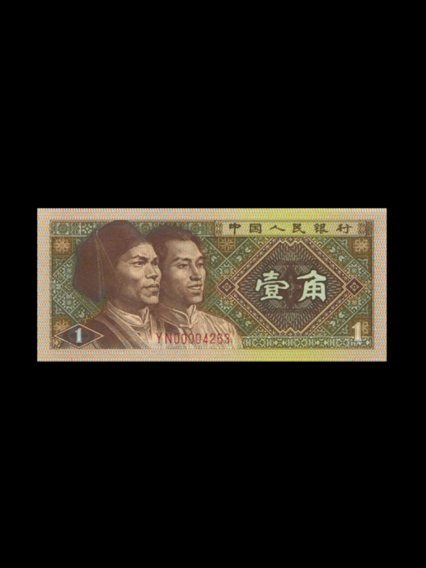 【名称】1980年版壹角民族人物头像【发行时间】1988年9月22日【票面尺寸】115×52mm【正面图案】高山族、满族人物头像【印刷工艺】正背面胶印【水印】无水印;【冠号】二字冠、八号码,红色冠号。