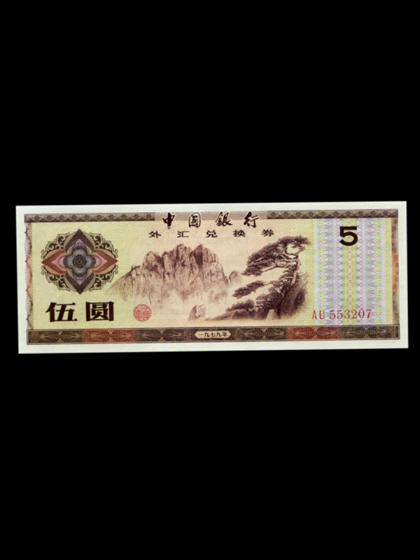 外汇兑换券简称外汇券,是含有外汇价值的人民币代用券。它只能在指定的范围内与人民币等值使用,但不是另一种货币。中国银行从1980年4月起发行外汇兑换券。外汇券是一种票券,印有与人民币等值的面值,可以单独使用,有购买能力,而且购买力与当时的人民币钞票不同,属于一种集券、币于一身的特殊的货币。1995年1月1日停止流通后,它只具有收藏价值。产生原因20世纪70年代后期,随着中国旅游事业的发展和对外经济文化交流活动的不断增加,来中国的外国人、华侨和港澳台同胞日渐增多,专门为他们服务的宾馆、商店及其他服务部门也相应增加。由于中国实行统一的人民币市场,禁止外币在国内市场流通,为便于外国人、华侨、港澳台同胞及驻华外交、民间机构常驻人员在这些场所购买物品和支付费用,中国银行从1980年4月起发行外汇兑换券。其面额分100元、50元、10元、5元、1元、5角和1角7种,票面与人民币等值,不准挂失。外汇兑换券的兑换手续是:凡国外旅客、华侨和港澳台同胞入境时,所携入的外币、外汇可一次向中国银行兑换成外汇券。出境时,如有剩余外汇券来不及兑回外币时,允许自由携出境外,以后来华时可再携入使用。货币职能外汇券严格来说是一种票券,而非广泛流通于中国各地的货币,但它又不同于粮票、布票、煤票、油票等票券,它印有与人民币等值的面值,可以单独使用,有购买能力,而且购买力与当时的人民币钞票不同。属于一种集券、币于一身的特殊的货币。票券概况中国银行于1980年4月1日开始发行1979年版外汇兑换券,面额分为1角、5角、1元、5元、10元、50元、100元7种,1990年4月1日又发行了1988年版50元、100元券,这样共计发行了7种面额、9种版别。外汇券发角为最小单位,角以下的小数使用人民币辅币。外汇兑换券的票面特点是:正面上书【中国银行】、【外汇兑换券】,中央是中国的风景名胜图景,四周饰以机刻花纹构成的封闭式四边框,两旁上部分别有机刻花球图案和阿拉伯数字面额,下部印有汉字面额与汉字、号码。1979年版各票券为2个汉语拼音冠字6位号码,1988年版各票券为2个冠字8位号码,并有【行长之章】印,下边框有【一九七九年】或【一九八八年】年别年号。50元、100元右方有国徽固定水印,10元至5角券有五角星、火炬混合满版水印,1角券为国旗五角星满版水印。背面印有英文【中国银行外汇兑换券】和阿拉伯数字、英文数字面额,中间是中、英文的文字说明。1988年版100元券与1979年版100元券只是颜色不同,1988年版50元券与1979年版50元券除颜色不同之外,主景和花纹图案等均有变化。