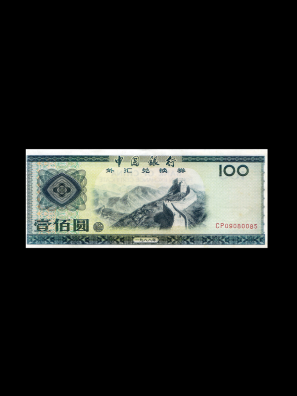 外汇兑换券简称外汇券,是含有外汇价值的人民币代用券。它只能在指定的范围内与人民币等值使用,但不是另一种货币。中国银行从1980年4月起发行外汇兑换券。外汇券是一种票券,印有与人民币等值的面值,可以单独使用,有购买能力,而且购买力与当时的人民币钞票不同,属于一种集券、币于一身的特殊的货币。1995年1月1日停止流通后,它只具有收藏价值。产生原因20世纪70年代后期,随着中国旅游事业的发展和对外经济文化交流活动的不断增加,来中国的外国人、华侨和港澳台同胞日渐增多,专门为他们服务的宾馆、商店及其他服务部门也相应增加。由于中国实行统一的人民币市场,禁止外币在国内市场流通,为便于外国人、华侨、港澳台同胞及驻华外交、民间机构常驻人员在这些场所购买物品和支付费用,中国银行从1980年4月起发行外汇兑换券。其面额分100元、50元、10元、5元、1元、5角和1角7种,票面与人民币等值,不准挂失。外汇兑换券的兑换手续是:凡国外旅客、华侨和港澳台同胞入境时,所携入的外币、外汇可一次向中国银行兑换成外汇券。出境时,如有剩余外汇券来不及兑回外币时,允许自由携出境外,以后来华时可再携入使用。货币职能外汇券严格来说是一种票券,而非广泛流通于中国各地的货币,但它又不同于粮票、布票、煤票、油票等票券,它印有与人民币等值的面值,可以单独使用,有购买能力,而且购买力与当时的人民币钞票不同。属于一种集券、币于一身的特殊的货币。票券概况中国银行于1980年4月1日开始发行1979年版外汇兑换券,面额分为1角、5角、1元、5元、10元、50元、100元7种,1990年4月1日又发行了1988年版50元、100元券,这样共计发行了7种面额、9种版别。外汇券发角为最小单位,角以下的小数使用人民币辅币。外汇兑换券的票面特点是:正面上书【中国银行】、【外汇兑换券】,中央是中国的风景名胜图景,四周饰以机刻花纹构成的封闭式四边框,两旁上部分别有机刻花球图案和阿拉伯数字面额,下部印有汉字面额与汉字、号码。1979年版各票券为2个汉语拼音冠字6位号码,1988年版各票券为2个冠字8位号码,并有【行长之章】印,下边框有【一九七九年】或【一九八八年】年别年号。50元、100元右方有国徽固定水印,10元至5角券有五角星、火炬混合满版水印,1角券为国旗五角星满版水印。背面印有英文【中国银行外汇兑换券】和阿拉伯数字、英文数字面额,中间是中、英文的文字说明。1988年版100元券与1979年版100元券只是颜色不同,1988年版50元券与1979年版50元券除颜色不同之外,主景和花纹图案等均有变化。