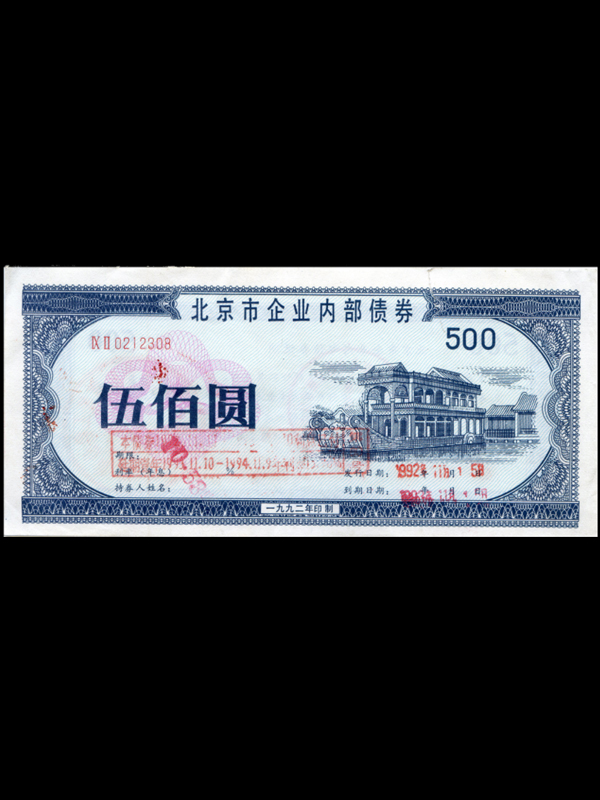 1992年北京市企业内部债券(500元)