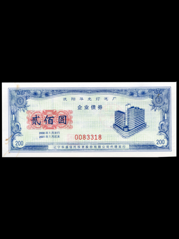 2000年沈阳华光灯泡厂债券(200元)