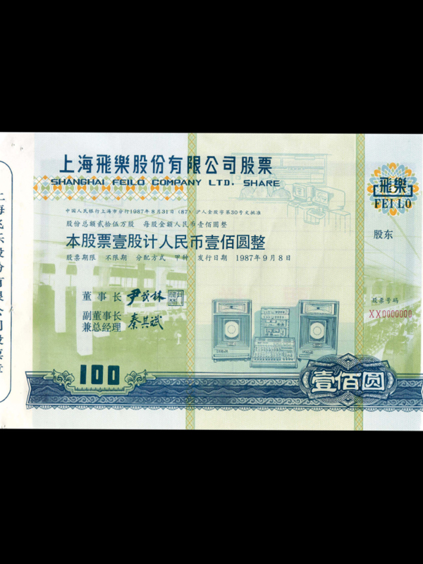 【1987年上海飞乐股份有限公司(100元)】