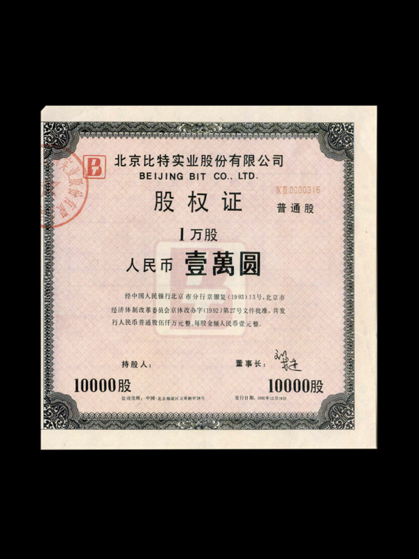 【1993年北京比特实业有限公司(10000元)】