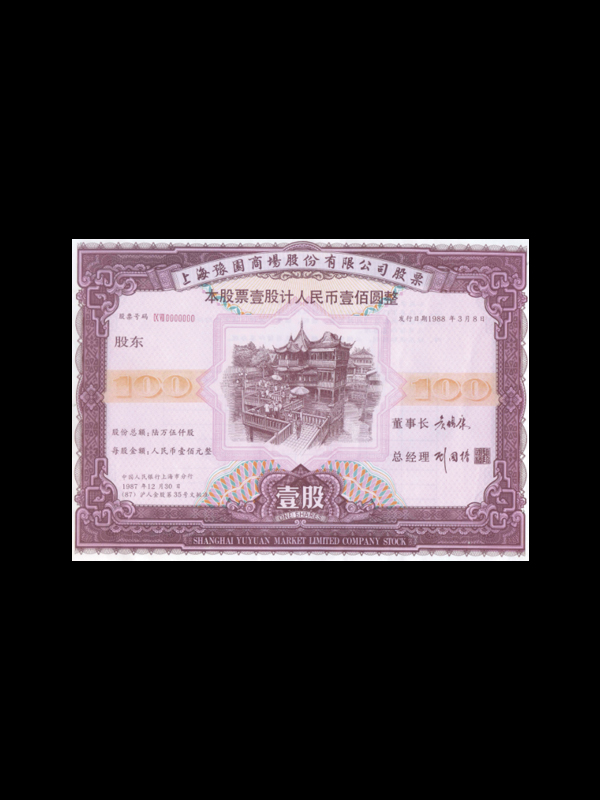 【1987年上海豫圆商场股份有限公司股票(100元)】