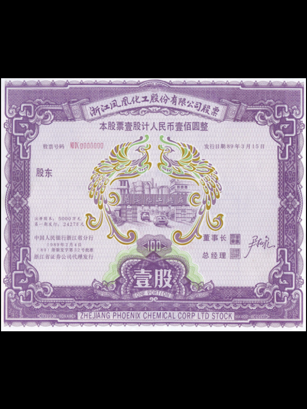 【1989年浙江凤凰化工股份有限公司股票(100元)】