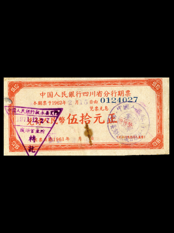 1961年中国人民银行四川省分行期票(50元)