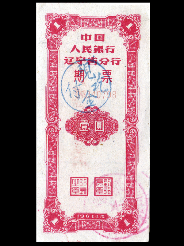1961年中国人民银行辽宁省分行期票(1元)
