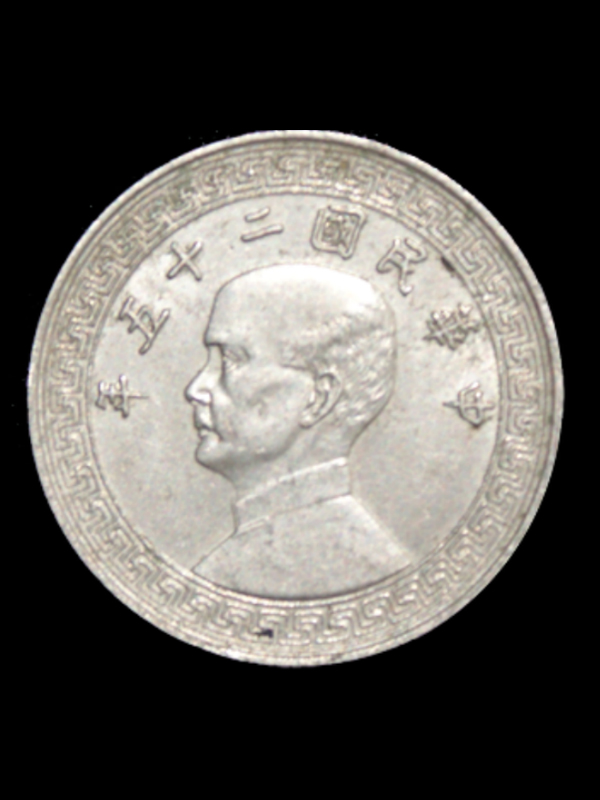 法币镍辅币。奥地利维也纳造币厂铸造。正面为孙中山像及铸造年份“中华民国二十五年”背部为布币图案及面额“廿分”,布币图案下方有铸造厂标志“A”字样。镍质,直径24mm,重约6克。