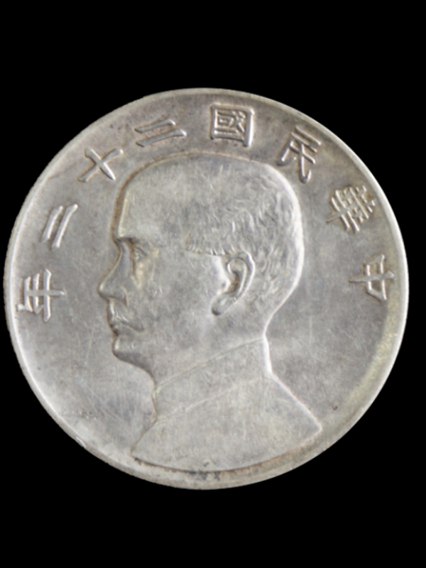 正面为孙中山像及铸造年份“中华民国二十二年”,背部为帆船图案及面额“壹圆”。直径39mm,重26.6克。