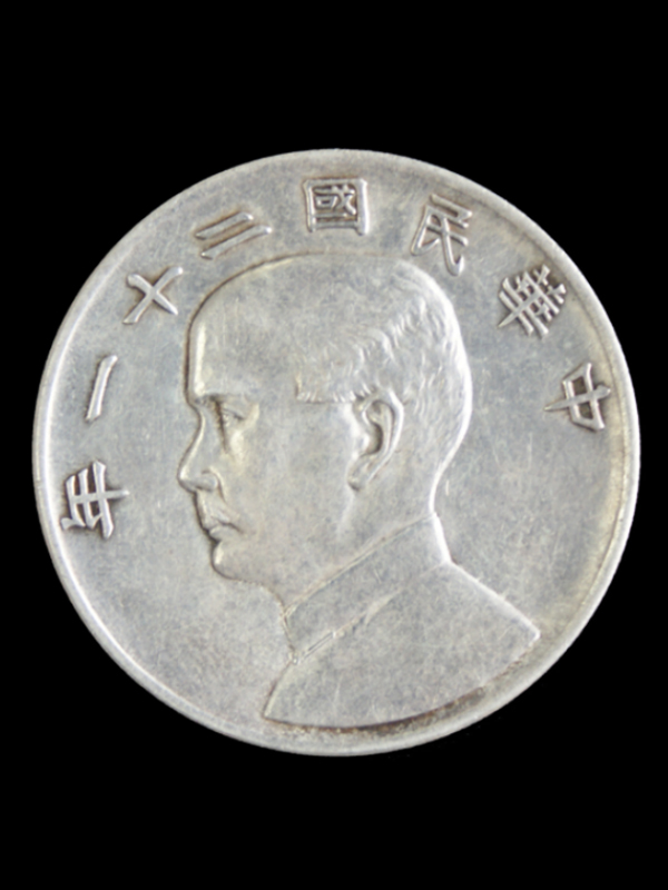 正面为孙中山像及铸造年份“中华民国二十一年”,背部为帆船、三只海鸥、旭日图案及面额“壹圆”。铜锌镍合金质,直径39mm,重26.6克。
